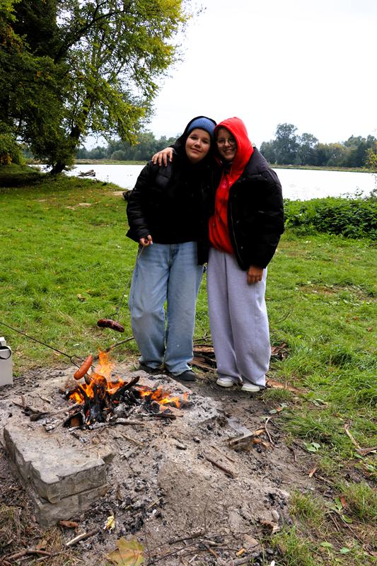 Po aktywnych zajęciach przyszedł czas na ognisko z pieczeniem kiełbasek i wspólny odpoczynek. Nie zabrakło integracji, śmiechu i rozmów przy ogniu.